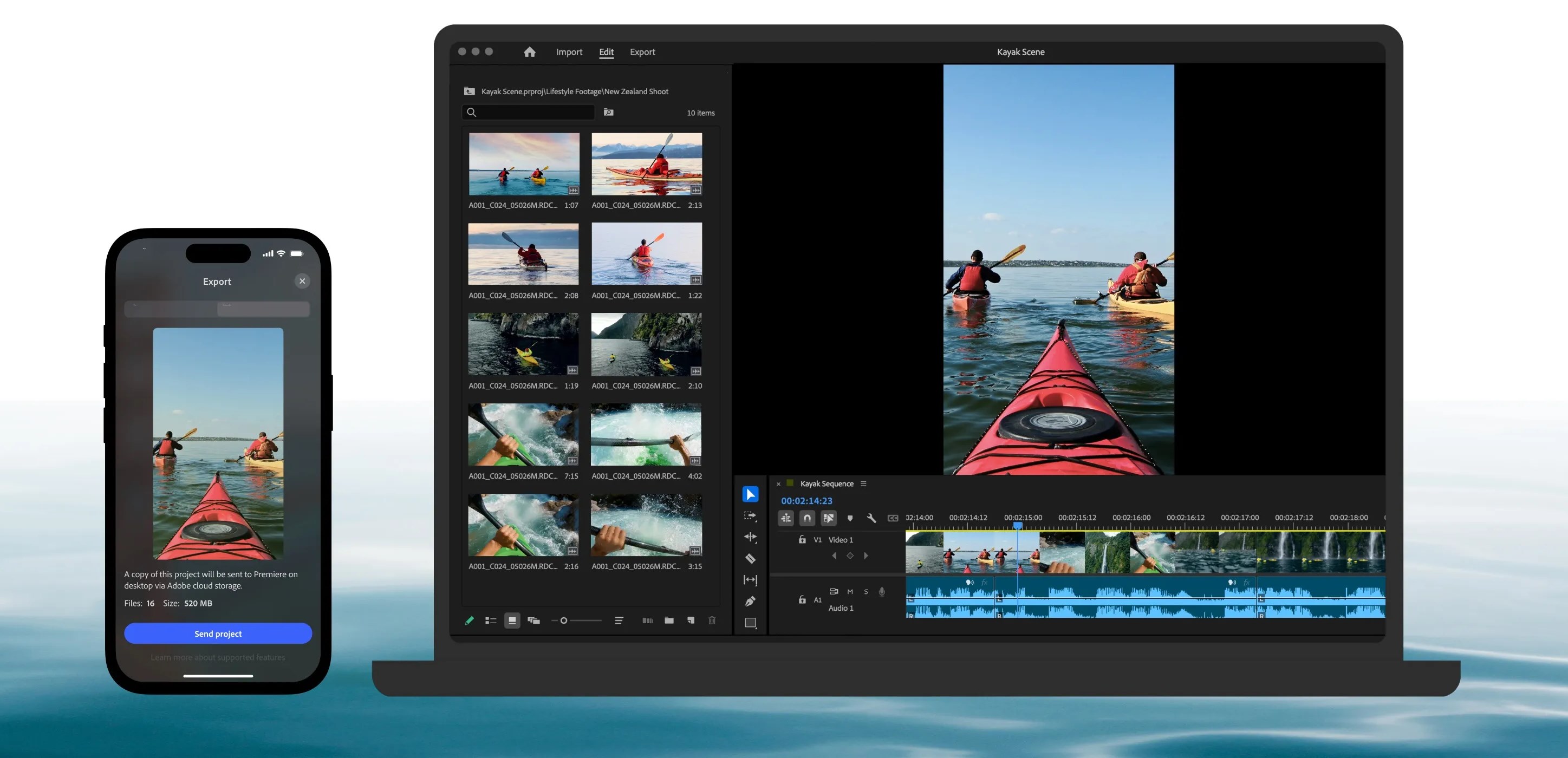 Yeni Premiere uygulamasıyla içerik üreticiler, projelerine mobil cihazlarında başlayıp Adobe Cloud üzerinden masaüstü uygulamalarına aktarabilecekler. Ancak şu anda masaüstünde başlatılan projeler mobil cihazlara gönderilemiyor.
