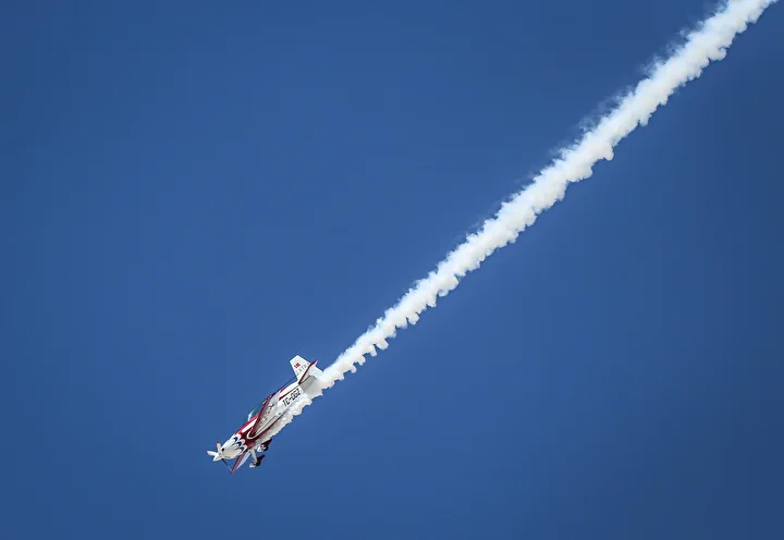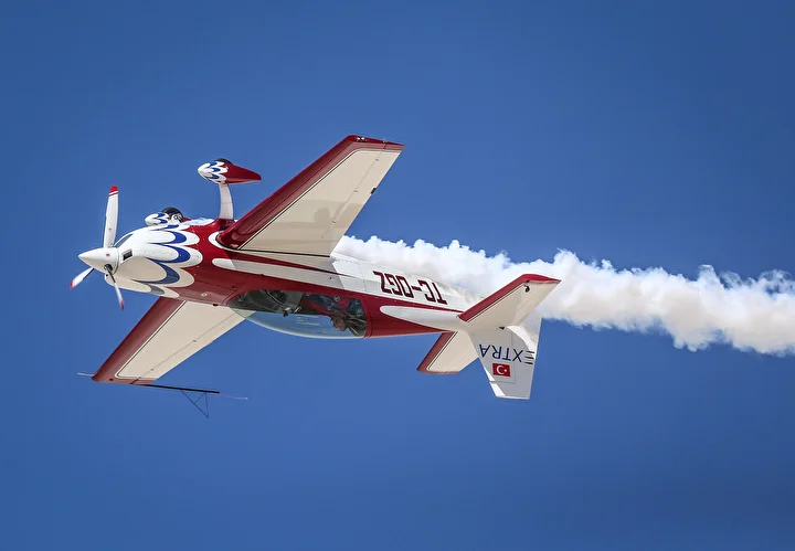 Türkiye’nin ilk profesyonel kadın akrobasi pilotu Semin Öztürk Şener’in “Yeni Menekşe” adlı akrobasi uçağı gösteri yaptı.
